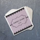 Create your own personalized wedding cocktail napkins. These napkins feature your names and wedding date set inside an ornate frame with a black lace illustration accent against a soft lavender background with a faux quilted pattern.