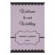 Create a personalized welcome sign for your wedding with this poster. It's ready to be customized with your own welcome message, your names, and your wedding date. My black lace illustrations are set against a soft lavender background with a faux quilted pattern.