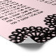 Let your wedding guests know where they are sitting with this seating chart poster. It features my black lace illustrations against a soft pink background. The Headline "Find Your Seat" is at the top. Below that the names of the bride and groom, the wedding date and the city and state of the wedding are displayed. Then there's spots to customize each table arrangement for your guests.