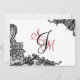 Elegant black lace over white background and white lace over black background with red and black monogram and white contrast modern goth thank you card.