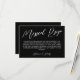 Let your guests know your wedding guest numbers have been turned in and, as they've missed the turn in date they can no longer attend with this elegant and polite missed RSVP card in a black and white typography design and, on the back, a laurel wreath monogram with white text against a black background. Black and white missed RSVP card to politely inform your guests they've missed the reply by date to your wedding.