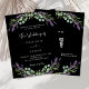 A black background decorated with lavender flowers and eucalyptus greenery. Personalize and your names and details.