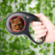 A sweet memory of your pet on his black leash with red and blue borders and customizable photos and name