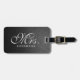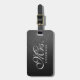 Custom luggage tag with leather strap Script monogram on black leather background with black backside with space to enter your information
