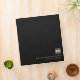 Keep your estate planning documents organized and secure with this stylish black leather print binder. The design features a customizable square logo with your company name and custom text in classic block typography on the front cover, and customizable text on the spine. The golden typography pops against the black background, making it the perfect choice for attorneys and legal professionals.