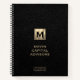 Modern notebook features a minimal luxury design with brushed metallic gold initial logo on a simple black leather textured print. Custom company name in classic block typography with area of expertise in the lower thirds. This personalized business notebook is designed with custom text. You can personalize by changing the text using the fields provided, or use the "message" button to contact the designer for help.