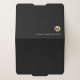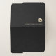 Modern monogram design with stylish brushed metallic gold monogram medallion with personalized name below on a black leather look textured background. Personalize for your custom use.