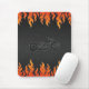 Black Leather Orange Flames Chrome Motorcycle Mouse Pad