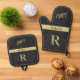 Black Leather Texture Chef Monogram Name Oven Mitt & Pot Holder Set