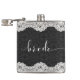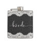 Black Leather, White Lace, & Bride Typography Hip Flask