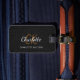 Black leather white monogram name luggage tag