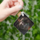 The key chain is made of metal and really sturdy. The flower design is really cheerful. The logo and colors are clear and crisp!