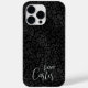 Elegant black leopard iPhone case with customizable typography in trendy script font and personalized with your name.