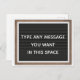 This postcard has an illustration of a black letter board or marquee style sign set inside of a brown wood frame. It's ready for you to add your own slogan or personalized greeting to in bold white lettering.