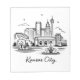 Black line Kansas city illustration, monochrome American city skyline, USA modern cityscape, Missouri landmarks