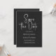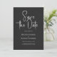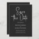 Whimsical minimalistic modern, customizable white script typography, elegant save-the-date invitation. The black color printed linen texture background adds a touch of organic feel of classic elegance. Other colors are available.