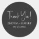 Whimsical minimalistic modern, customizable white script typography, welcome wedding gift sticker. The black linen printed texture background adds a touch of organic feel of classic elegance. Other colors are available.