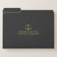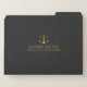Elevate your brand's image with our high-quality, customizable file folder. Featuring your company logo and elegant gold typography on a luxurious black linen-textured print, this sophisticated folder is sure to leave a lasting impression. Ideal for law firms looking to make a professional statement, this sleek design is the perfect addition to your office supplies. Upgrade your brand identity with our premium file folder today.