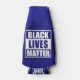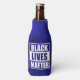 Social justice themed bottle cooler with a colorful twist features "Black Lives Matter" typography block in white with dark blue celestial skies background