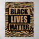 Social justice themed wall art with a touch of glam! Typography style Black Lives Matter on glam black and gold glitter tiger stripe background