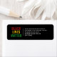 Stylish BLACK LIVES MATTER Return Address Labels, showing red, yellow and green typography against a rich black background. Simply add your address details or other text. This would make a stylish addition to your correspondence, especially during BLACK HISTORY MONTH, but also throughout the year. Matching items available.