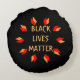 Easily personalize or remove the text on this round pillow inspired by the tragic shootings of black young people by police. It features an abstract pattern of gold, red and black with the text: Black Lives Matter. Let's all peacefully work for justice in our communities.