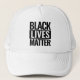 Black Lives Matter White Trucker Hat featuring typography protest sign
