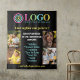 Black, yellow, and turquoise marketing backdrop for your small business personalized with your logo, photos, and custom text in eye catching yellow, white, and turquoise against black. Personalize the promo backdrop for your small business with four photos showcasing your work for your prospective clients along with tagline, website, and what you can offer them.