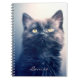 An adorable long hair kitten looking up with beautiful golden eyes. His fur is mostly black with cute tabby stripes on his face. Personalise with your name or remove.