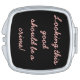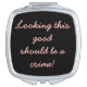 A funny phrase decorates this cute black compact. Let everyone know that looking this good should be a crime. The design is from original art.
