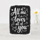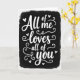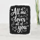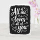 This card features the message “All of me loves all of you” in white lettering centered on a deep black background. The words are arranged in stacked lines, with the lines fitting closely together to keep the focus on the message. The lettering has smooth curves and a flowing look, and a few small white hearts are scattered around the words to add a sweet touch 💕. The strong contrast of white on black makes the text easy to read and feel direct and sincere. Around the edges, there’s a rough, worn border where the black fades into an uneven white edge, like a chalky frame. The overall look is simple, romantic, and focused on devotion ❤️. Hope it helps you share a little extra love with someone special this Valentine’s Day 😘.
