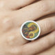 The design is protected with a clear, UV-resistant, and waterproof coating, making the ring a durable and meaningful accessory for everyday wear.