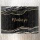 Elegant black agate marble design with faux gold glitter. Change the name to customize.