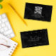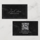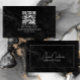 Black Marble ElegantScript QR CODE Black and White Business Card