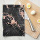 Black marble glitter rose gold kitchen towel. Fashion and glamour abstract illustration.