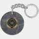 Black Marble Gold Badge Monogram Keychain