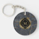 Simple, elegant, masculine design made with black and gold marble, custom monogram, and gold laurel wreath badge.