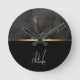 Black marble gold monogram round clock