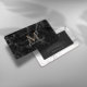 black marble masculine background with double monogram on the front all in elegant serif font and off black background with personal details in serif font on the back