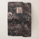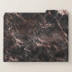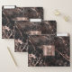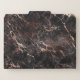 Elegant file folders featuring a background image of black marble with rose gold veins. Personalize them with your monogram initial in decorative font and your name in black copperplate lettering on a brushed rose gold faux foil square.