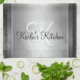 Kitchen towel with a Black Charcoal Marbled background, a soft white overlay, and decorative borders. Personalize with your initial and choice of text. Click on the "Customize It!" button to change the background image, add font, adjust the font size, type, color, and/or position as needed. Artwork and design by Karlajkitty