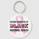 Black Maternal Health Awareness keychain. This is a modern design to raise awareness of issues surrounding Black maternal health, especially the high mortality rate in childbirth amongst African Americans and African Caribbeans in the US and the UK respectively. Design says RAISING AWARENESS OF BLACK MATERNAL HEALTH in black and pink typography and there is a light pink women's health awareness ribbon in the background. Ideal as a bulk buy as favor giveaways, especially during Black Maternal Health Week.