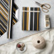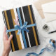 Wrapping paper in black, matte gold, and white stripe. Customizable.