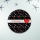 Cute personalize black button with a background of a medical equipment. From adhesive bandages, pills, bottles to blue stethoscopes. In the middle front there is a wide white line with the red text that you can personalize. On the right side of the text, there is an illustrated red heart. Customize further if you need to change the text font or size. You can delete the heart if necessary. Illustrated and designed by Patricia Alvarez.
