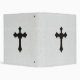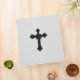 Image of black metal cross on white leather background