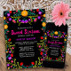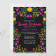 Black Mexican Fiesta Folk Art Floral Sweet Sixteen Invitation