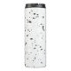 Small black and micro light gray glass chips Terrazzo pattern on a white background decorate this 12oz thermal tumbler. Easily change name with the Template provided; ample space to add text. Stainless body, plastic lid. Vacuum-sealed double walled construction retains temperature, hot or cold. See "About This Product" at side for more information and care.