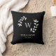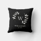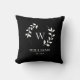 Black Minimal Monogram Initial Modern Newlywed Throw Pillow