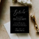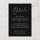 Elegant and minimal wedding invitation enclosure card featuring modern script text at the top on a black background. Customize this invite by adding information on your wedding including reception, accommodation, and website. Perfect for any season.