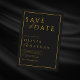 Make a bold and unforgettable statement with the "Black Minimalist Elegant Wedding Save the Date." This sleek design features a striking black background with simple, modern typography, creating a refined and stylish way to announce your upcoming wedding. Perfect for couples who love minimalist aesthetics with a touch of elegance, this Save the Date card is customizable with your wedding details, ensuring your guests mark their calendars for your special day in sophisticated fashion.